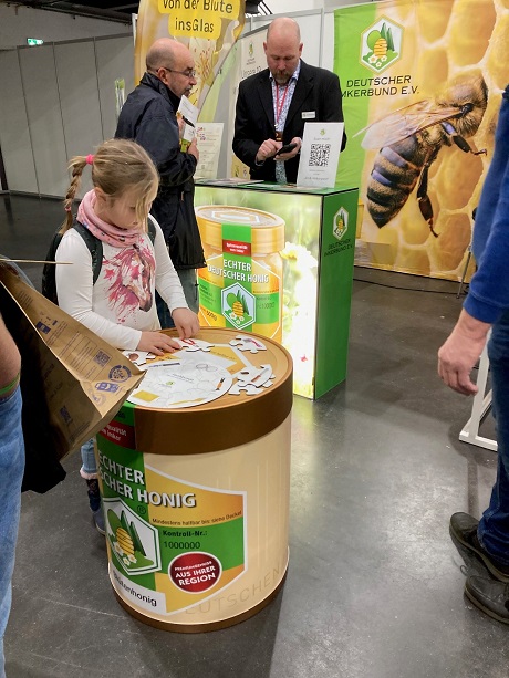 Auch für Familien und den Imkernachwuchs wurde einiges geboten: außer den beliebten Bienenmalbüchern und Forscherheften sorgte das D.I.B.-Imkerei-Puzzle bei kleinen wie großen Gästen für Unterhaltung. Als kleine Präsente verteilten die Mitarbeiter Honigbonbons, Samentütchen sowie Luftballons.