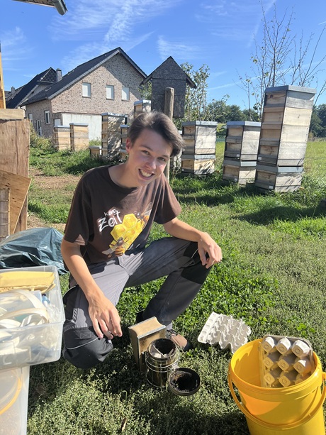 Ich habe Simon beim nationalen Jungimkertreffen Ende Mai in Ensdorf als einen der Teilnehmer des rheinländischen Teams kennengelernt und ihn im September bei seinen Bienen besucht.